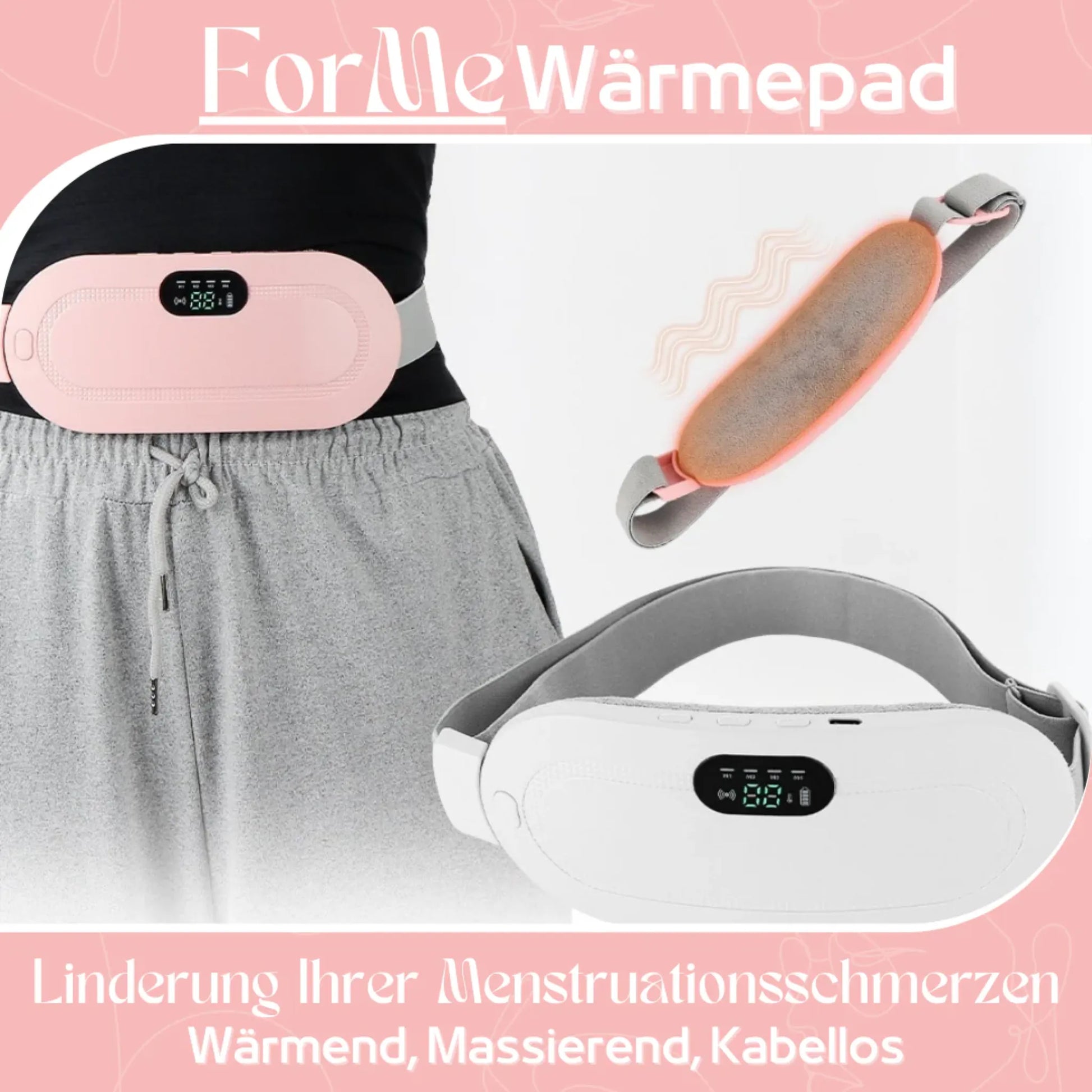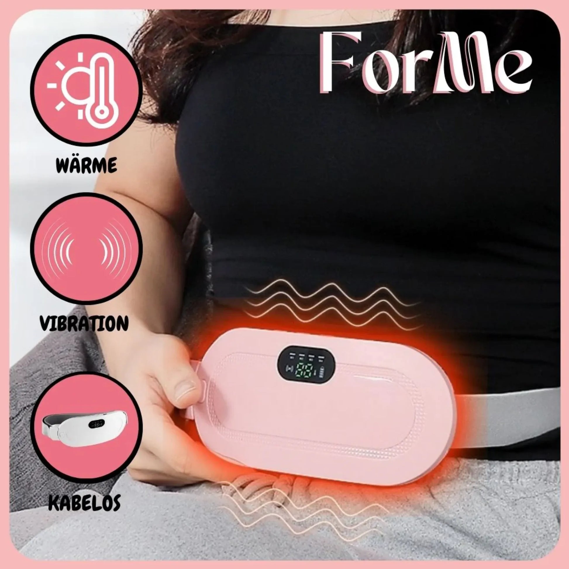 Nein – viele nutzen ihn auch bei Bauch‑ oder Rückenspannungen, z.B. nach langem Sitzen. Du kannst ihn dort tragen, wo Wärme und sanfte Vibration dir am meisten helfen. Er ist für Komfort gedacht, nicht als medizinisches Gerät.